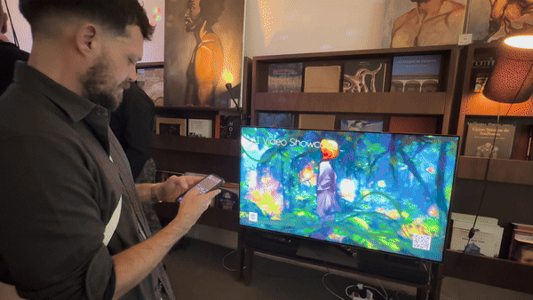Our team created a new broadcaster and receiver architecture that handles many layers at once. We can stack animated GIFs, looping videos, video on top of video, graphics, real-time animations, logos, and QR codes. You can turn layers on or off instantly. This unlocks the future version of Ambistream where your content behaves more like a programmable set design than a passive stream.